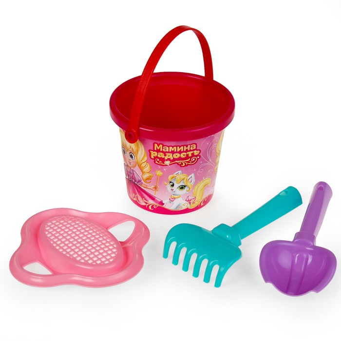 Песочный набор «Мамина радость»: ведро малое, ситечко-цветок, совок №2, грабельки №2