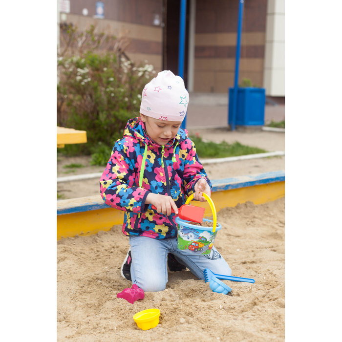 Песочный набор «Транспорт»: ведро среднее, 2 формочки, лопатка, грабельки