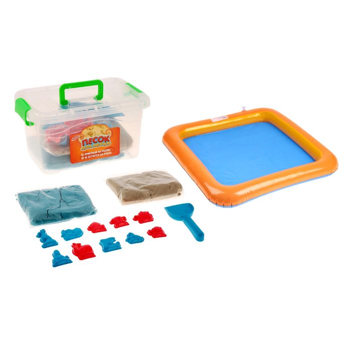 Песок для лепки "Морские жители", 10 формочек + совок, песочница надувная, натуральный и голубой по 1 кг