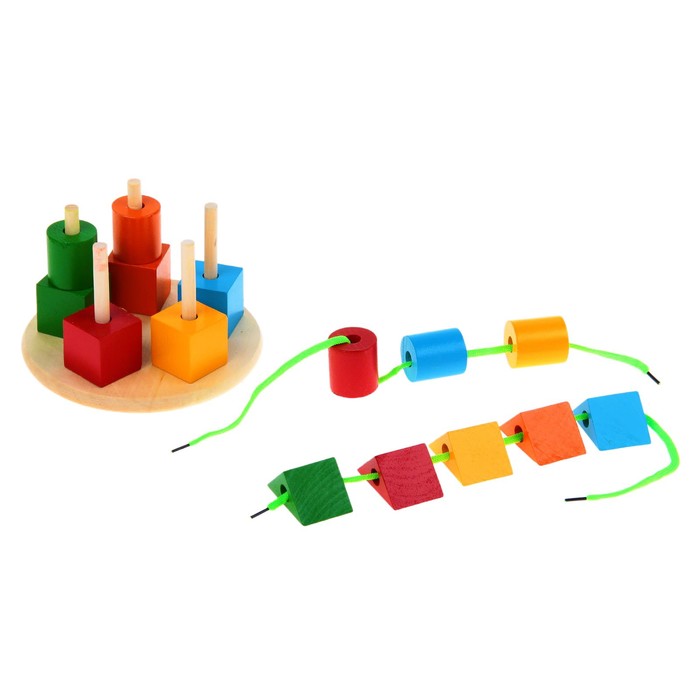 Пирамидка логическая "Башенки цветные" со шнуровкой