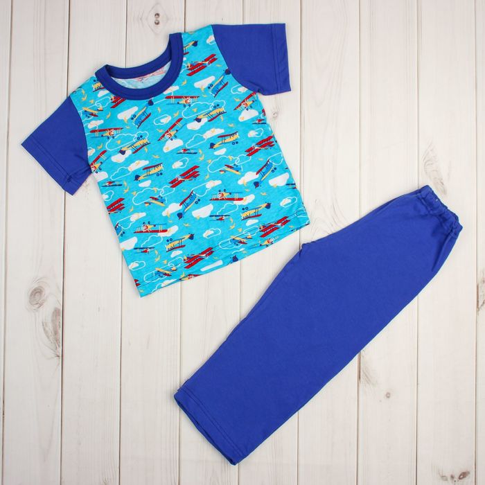 Пижама для мальчика (футболка+брюки), рост 92-98 см, цвет синий, принт микс 1311-56 _М