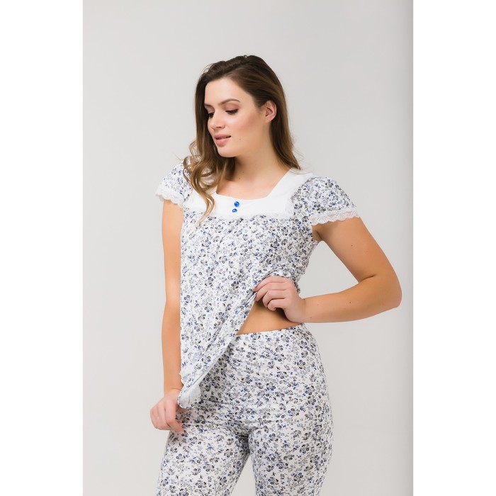 Пижама (футболка, бриджи) женская 233 цвет синий, бамбук, р-р 48