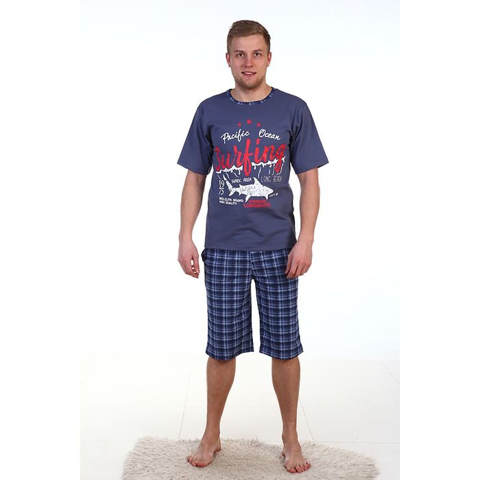 Пижама мужская (футболка, шорты) ПК182 МИКС, размер 60
