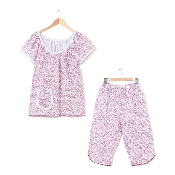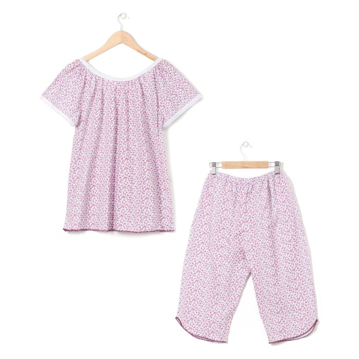 Пижама женская (футболка, бриджи) Светлана цвет белый, принт МИКС, р-р 60