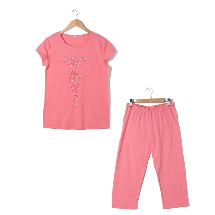 Пижама женская (футболка, бриджи) Вьюнок цвет коралл, р-р 52
