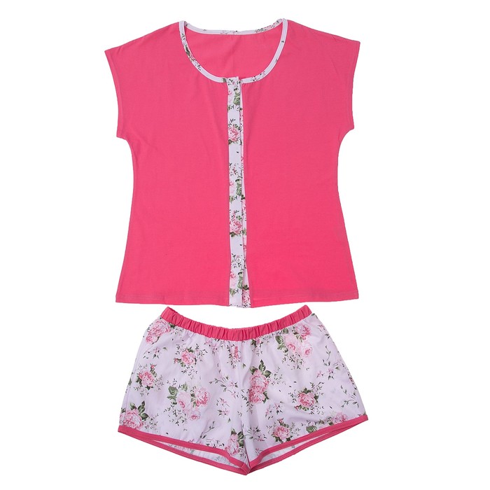 Пижама женская (футболка на пуговицах, шорты) 221хр1947 цвет тёмно-розовый, р-р 48