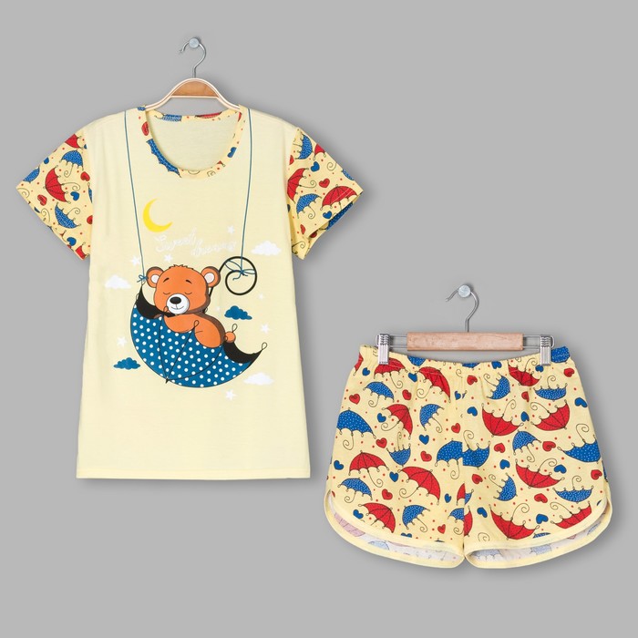 Пижама женская (футболка, шорты) ПК108 МИКС, размер 50