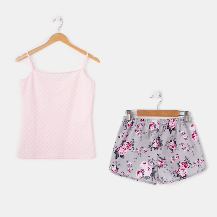 Пижама женская (майка, шорты) 633/1 цвет розовый/серый, р-р 48