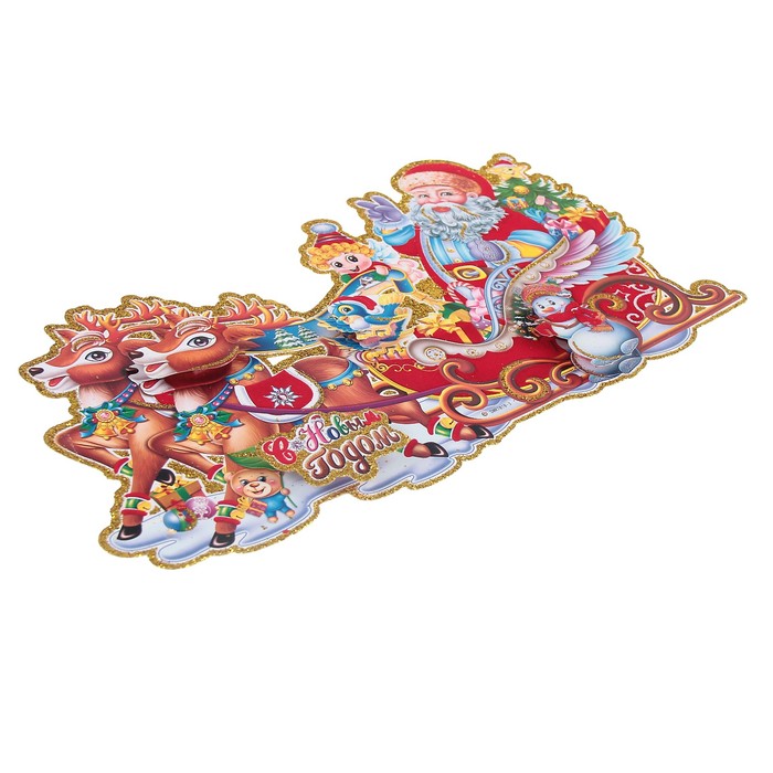 Плакат "Дед мороз на санках с ёлкой" 54*31,5 см