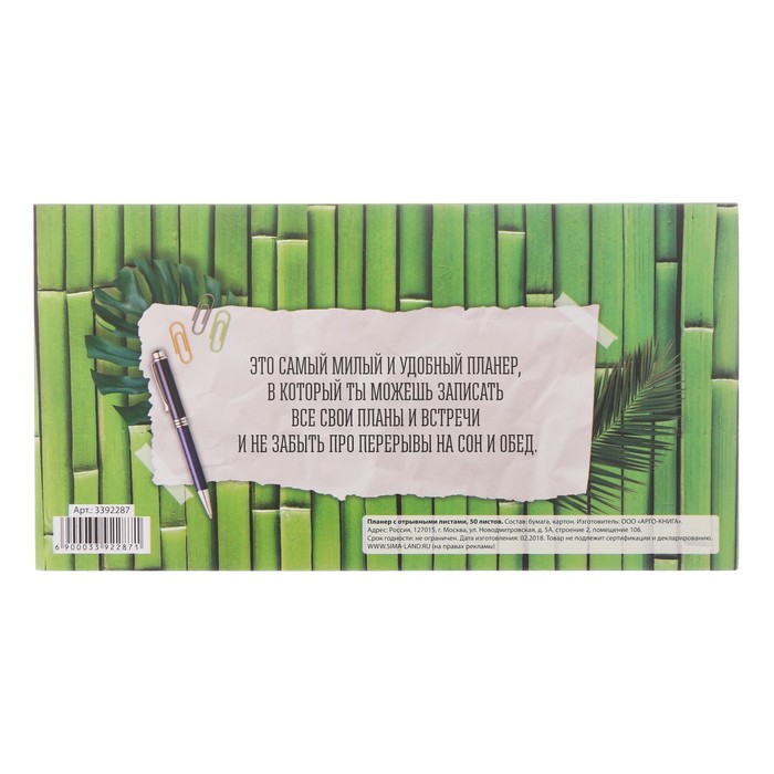 Планер с отрывными листами "Сегодня твой день!" поможет организовать ваше рабочее пространство и время. Востребованные предметы в удобной упаковке будут всегда под рукой в нужный момент.