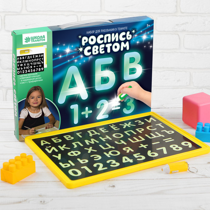 Планшет для рисования светом "Учимся вместе!" + трафарет