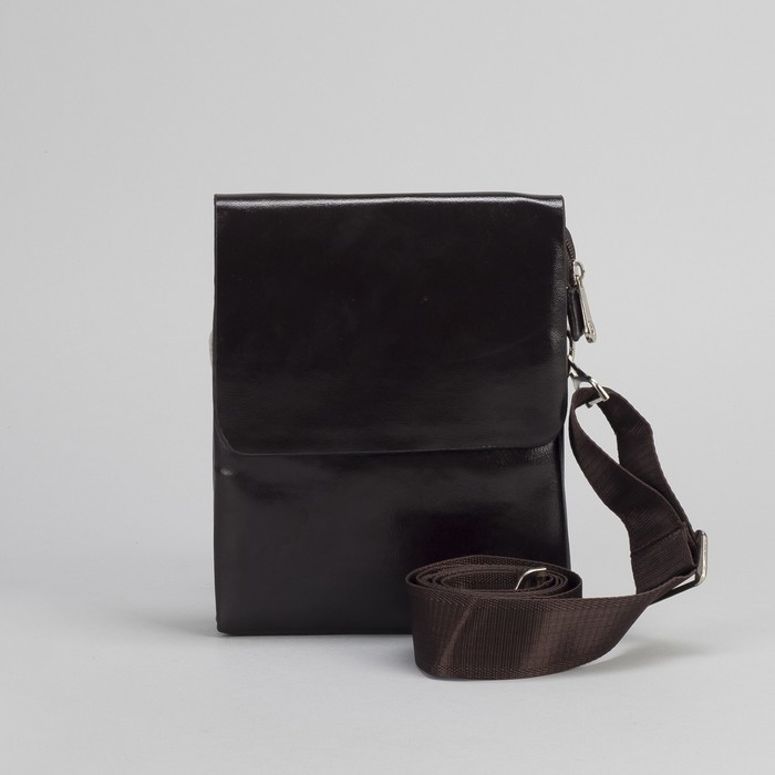 Планшет мужской "Классика", 1 отдел, 1 наружный карман, длинный ремень, коричневый