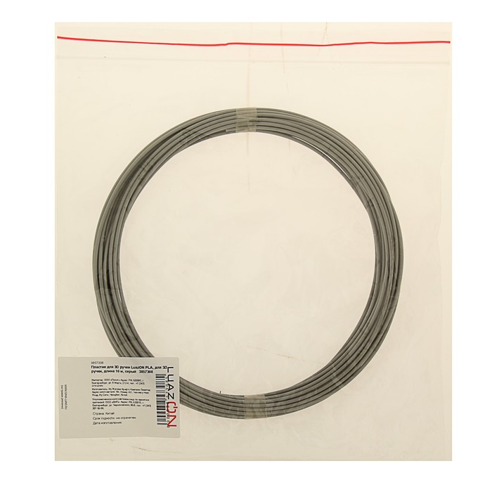 Пластик для 3D ручки LuazON PLA, для 3Д ручки, длина 10 м, серый