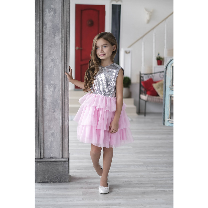Платье детское KAFTAN, рост 122-128 см (34), серебряный/розовый