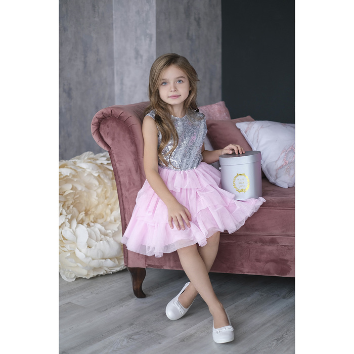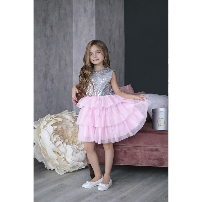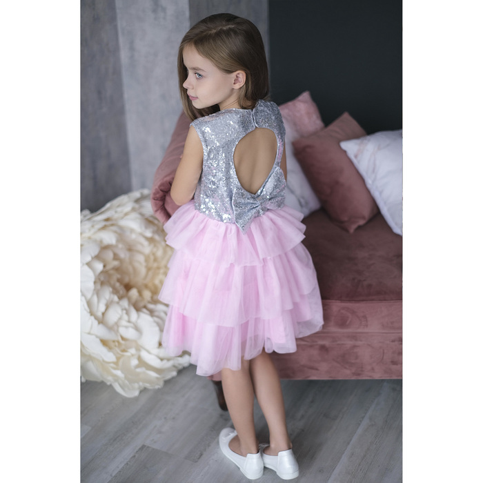 Платье детское KAFTAN, рост 134-140 см (36), серебряный/розовый