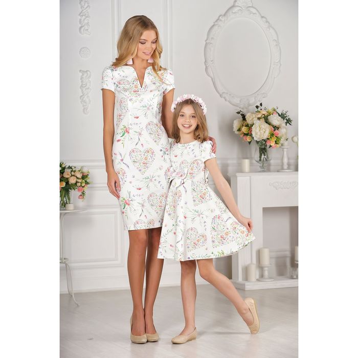 Платье для девочки family look цвет белый, р-р 30, рост 104 см