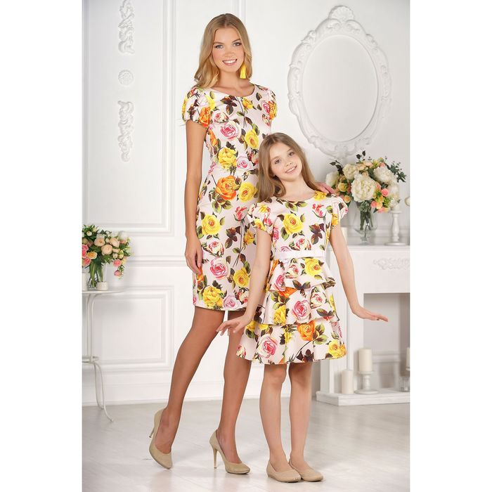 Платье для девочки family look цвет бежевый, р-р 36, рост 122 см