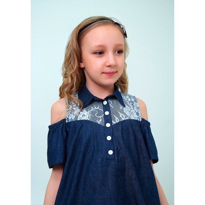 Платье для девочки, рост 146 см, цвет тёмно-джинсовый