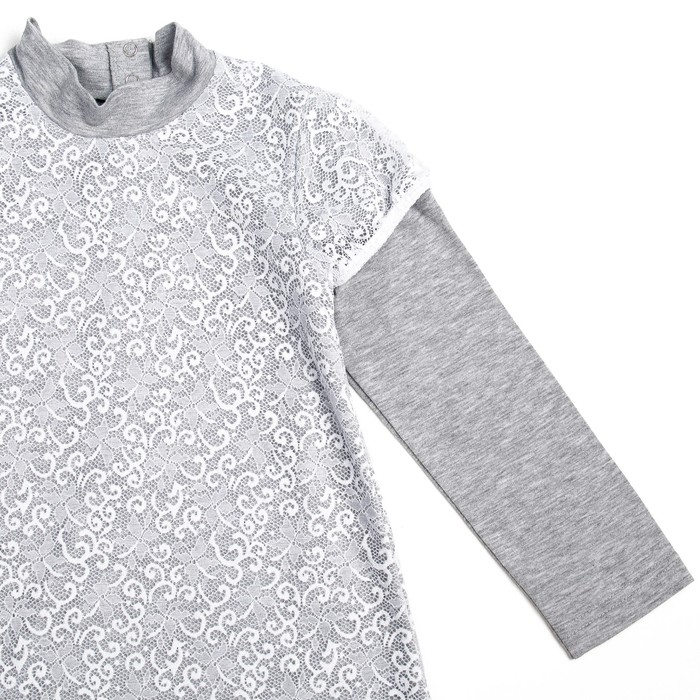 Платье для девочки, рост 98 см, цвет серый меланж/белый Т012