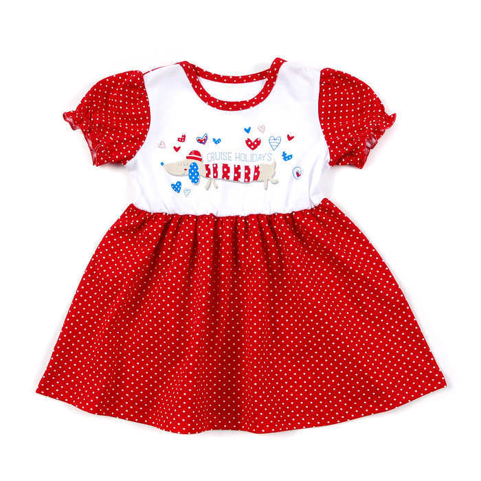 Платье для девочки "Такса", рост 86 см (52), цвет белый+красный горох ДПК881001н