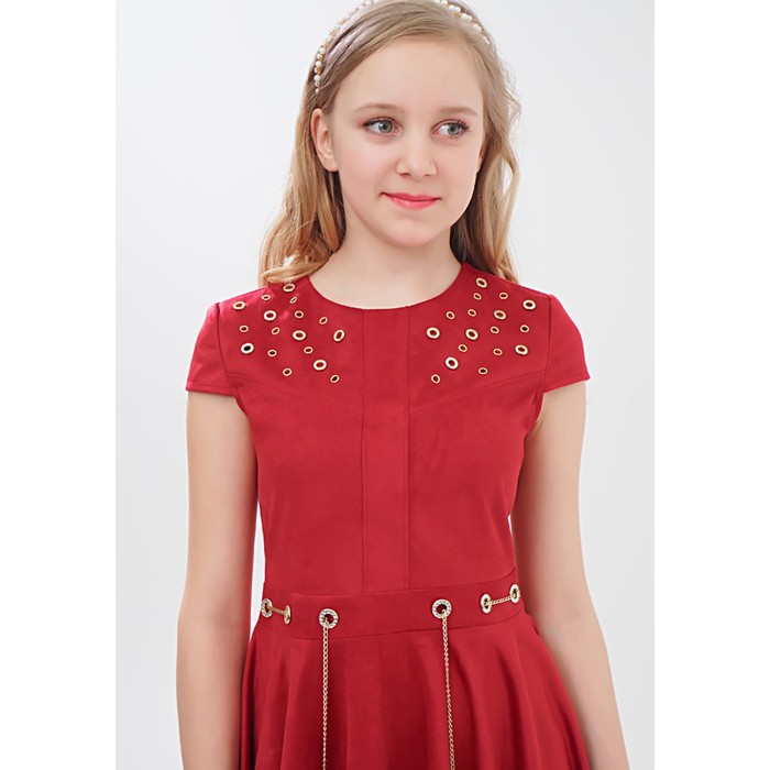 Платье нарядное детское + цепочка, рост 134 см, цвет бордовый 2Т36-3