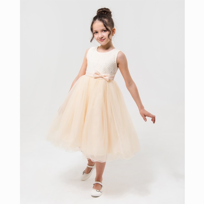 Платье нарядное Minaku "Блеск" бежевый, 110-116 см, п/э, хлопок