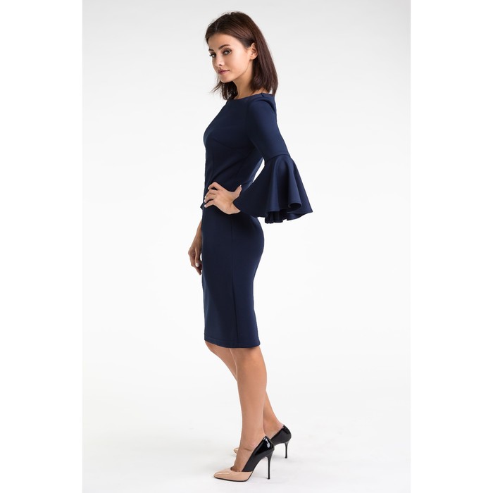 Платье женское футляр с расклешенными рукавами, размер 42, цвет тёмно-синий