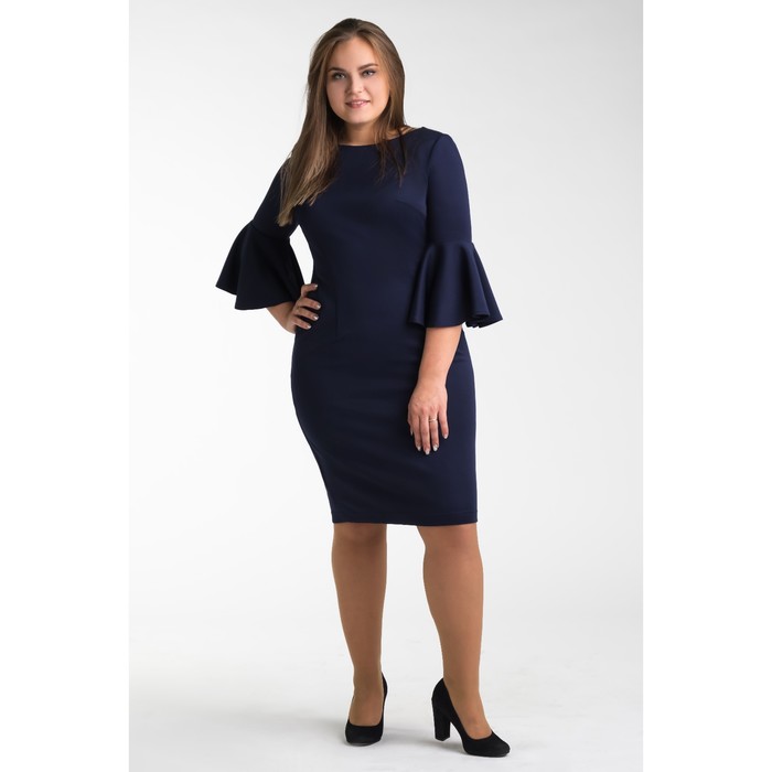 Платье женское футляр с расклешенными рукавами, размер 50, цвет тёмно-синий