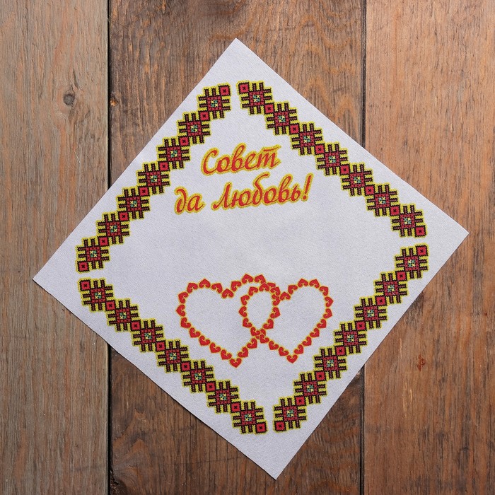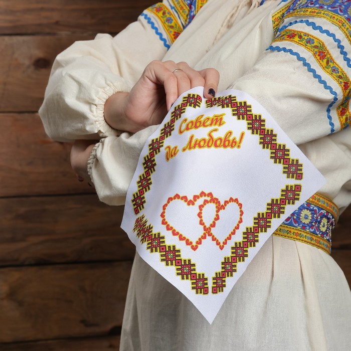 Платочек "Совет да любовь" В-101 предназначен для встречи родителями молодожёнов хлебом и солью и символизирует нерушимую связь двух любящих сердец.