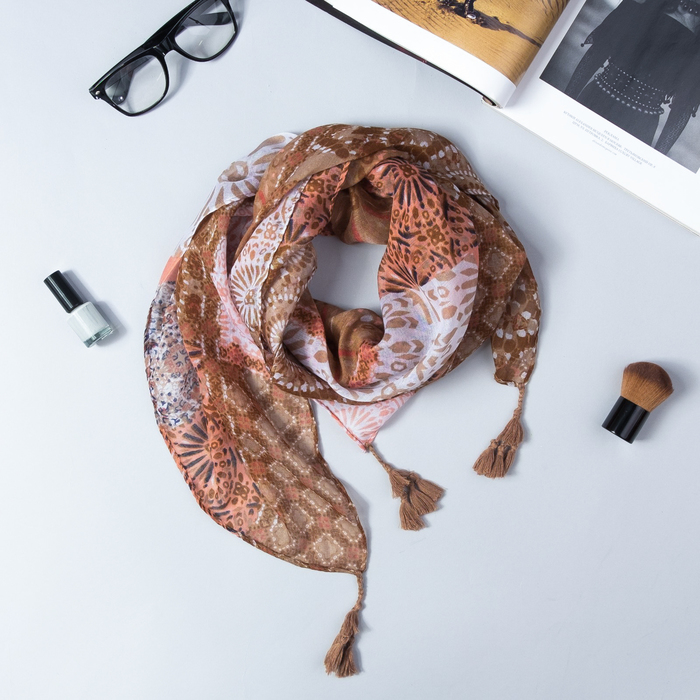 Платок с кистями Этель "София", размер 85*85 см, цвет бежевый, вискоза