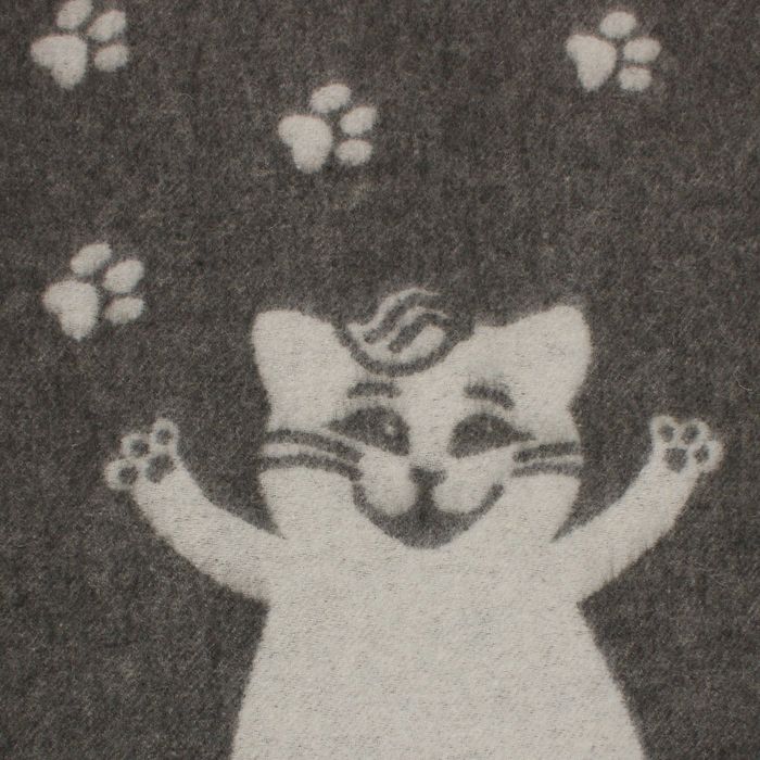 Плед шерстяной Коты 140х200 см, бел/сер, 70% шерсть Мериноса, 30% п/э
