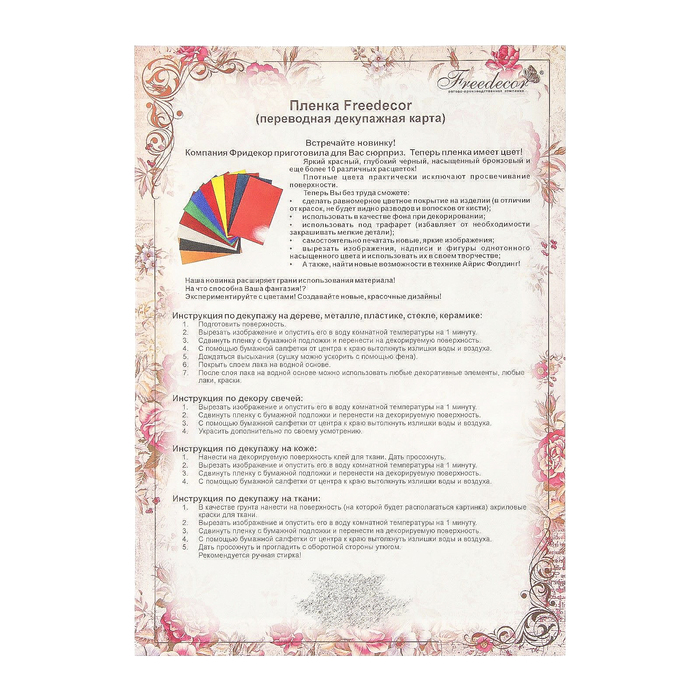 Пленка Freedecor декупажная "Шедевры искусства №1" формат А4 для темн.поверхностей