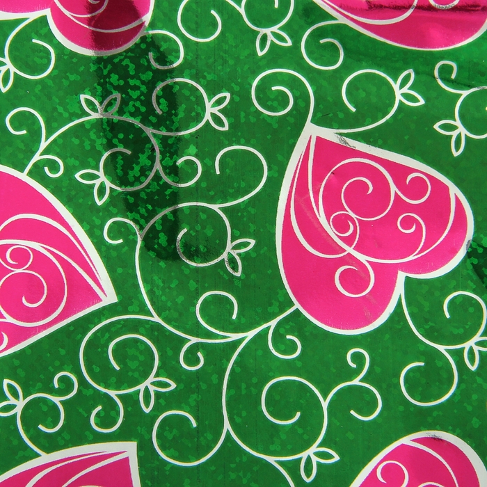 Пленка голография "Розовые сердца", зелёный, 70 х 100 см - один из универсальных и красивейших материалов для декорирования и упаковки цветов и подарков. Она подходит как для самостоятельного оформления подарочной композиции, так и для выведения отдельных элементов.