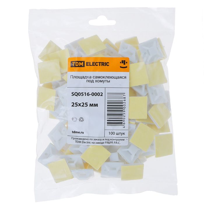 Площадка самоклеящаяся TDM, 25х25 мм, под хомуты, 100 шт, SQ0516-0002