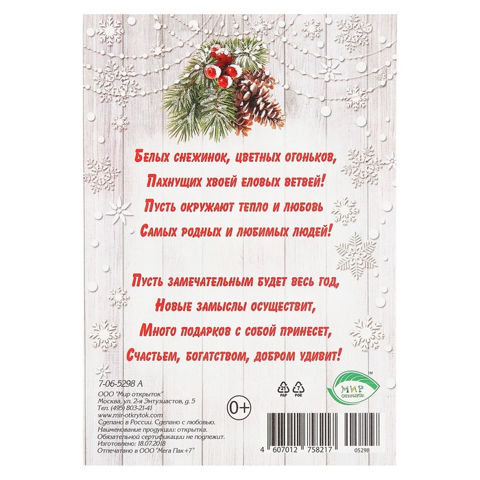 Почтовая карточка "С Новым Годом!", снегири, фонарь, 15х11см