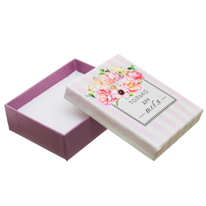 Любой подарок начинается с упаковки. Что может быть трогательнее и волшебнее, чем ритуал разворачивания полученного презента. И именно оригинальная, со вкусом выбранная упаковка выделит ваш подарок из массы других. Она продемонстрирует самые тёплые чувства к виновнику торжества и создаст сказочную атмосферу праздника. Подарочная коробочка под кулон/серьги/кольцо «Только для тебя», 7 х 9 х 2,8 см — это то, что вы искали.