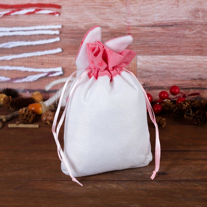 Подарочная сумочка "Зайка" щечки и ушки в горошек, цвета МИКС станет оригинальным оформлением вашего подарка. Положите в неё конфеты, игрушки, любые приятные мелочи и затяните концы. Обычные сладости, упакованные таким образом, превратятся в настоящий сюрприз.
