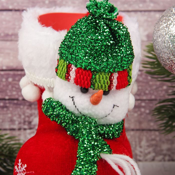 Подарочная упаковка "Сапожок" с зелёным снеговиком, вместимость 150 г