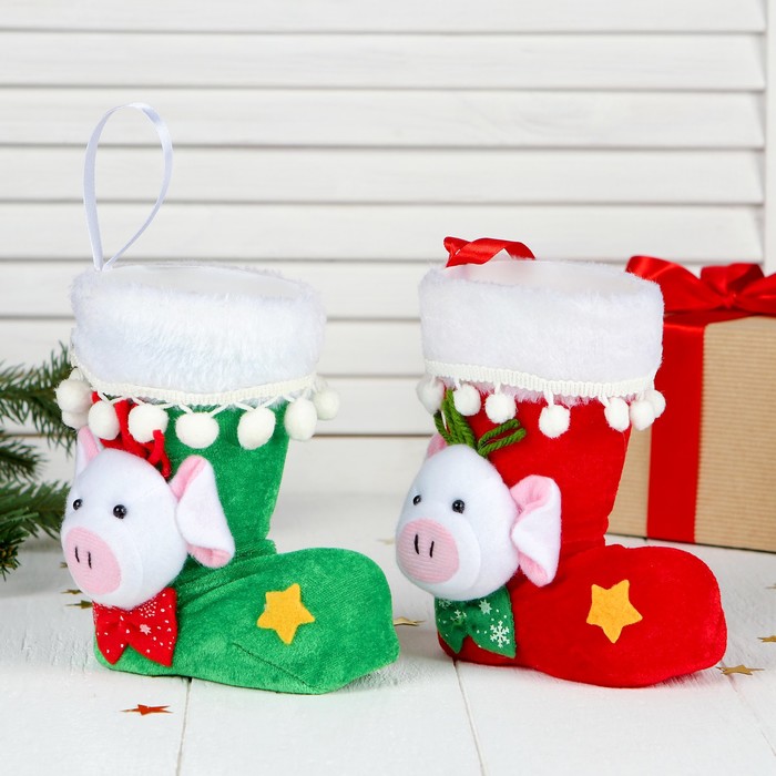 Подарочная упаковка "Сапожок" со свинкой и звёздочкой, цвета МИКС, вместимость 150 г