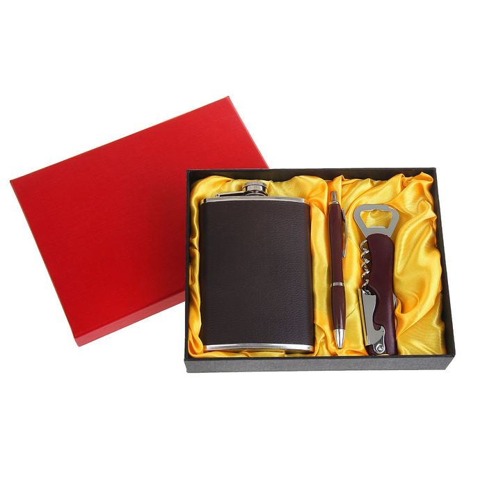 Подарочный набор 3 в 1 "Классика": фляжка 270 мл + нож-открывалка и ручка — сувенир в полном смысле этого слова. И главная его задача — хранить воспоминание о месте, где вы побывали, или о том человеке, который подарил данный предмет. Преподнесите эту вещь своему другу, и она станет достойным украшением его дома.