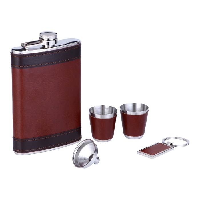 Подарочный набор 7 в 1 "Горький шоколад": фляжка 270 мл + 4 рюмки, воронка, брелок световой — сувенир в полном смысле этого слова. И главная его задача — хранить воспоминание о месте, где вы побывали, или о том человеке, который подарил данный предмет. Преподнесите эту вещь своему другу, и она станет достойным украшением его дома.