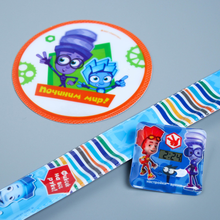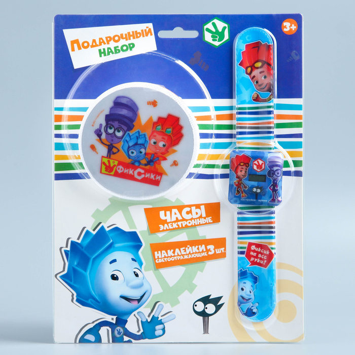 Подарочный набор ФИКСИКИ "Фиксик на все руки" с часами и светоотражающими наклейками
