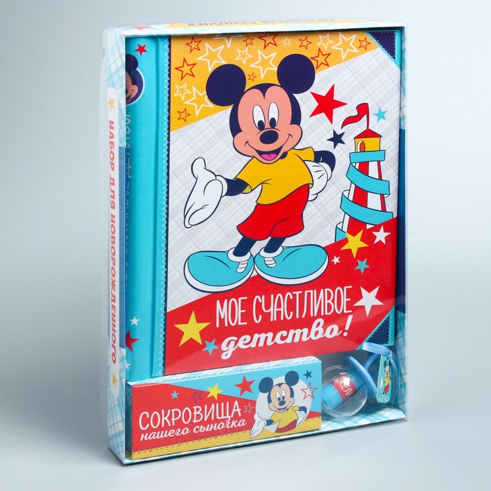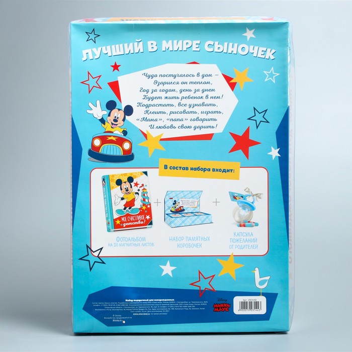 Подарочный набор: фотоальбом 20 магнитн. листов, памятные коробочки в пенале и сувенирная соска "Лучший в мире сыночек", Микки Маус и друзья