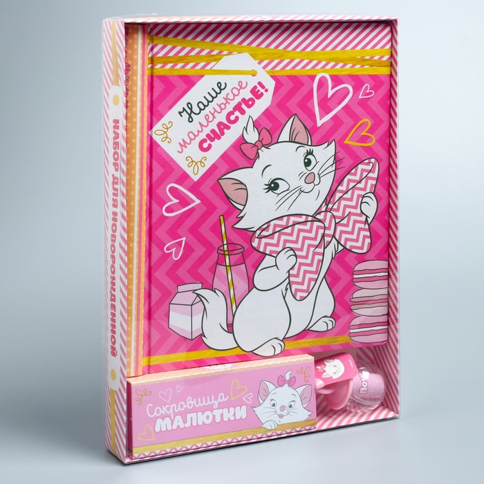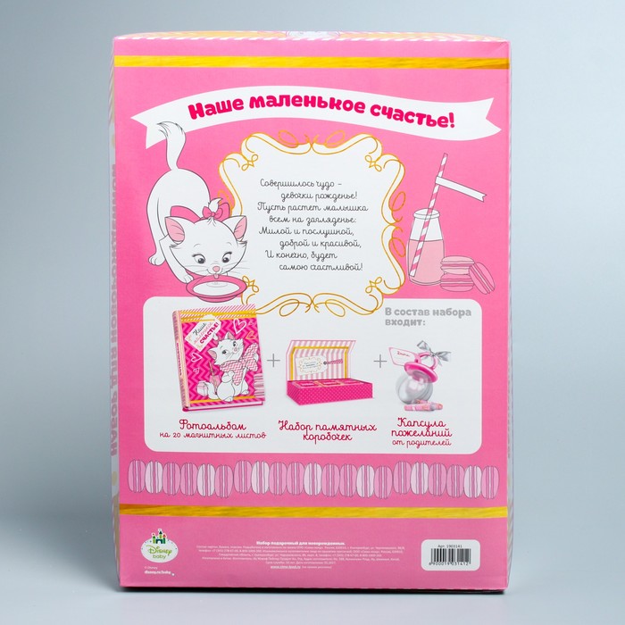 Подарочный набор: фотоальбом 20 магнитн. листов, памятные коробочки в пенале и сувенирная соска "Наше маленькое счастье!", Коты Аристократы, Кошечка Мари