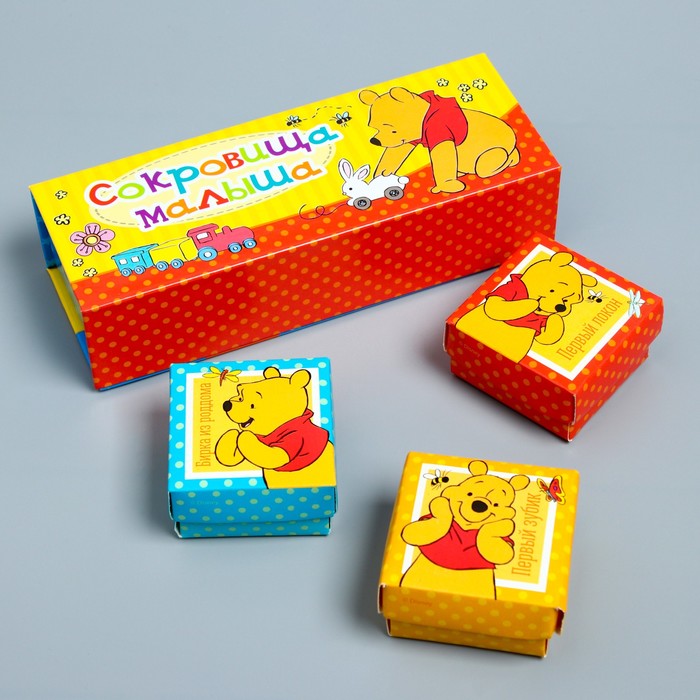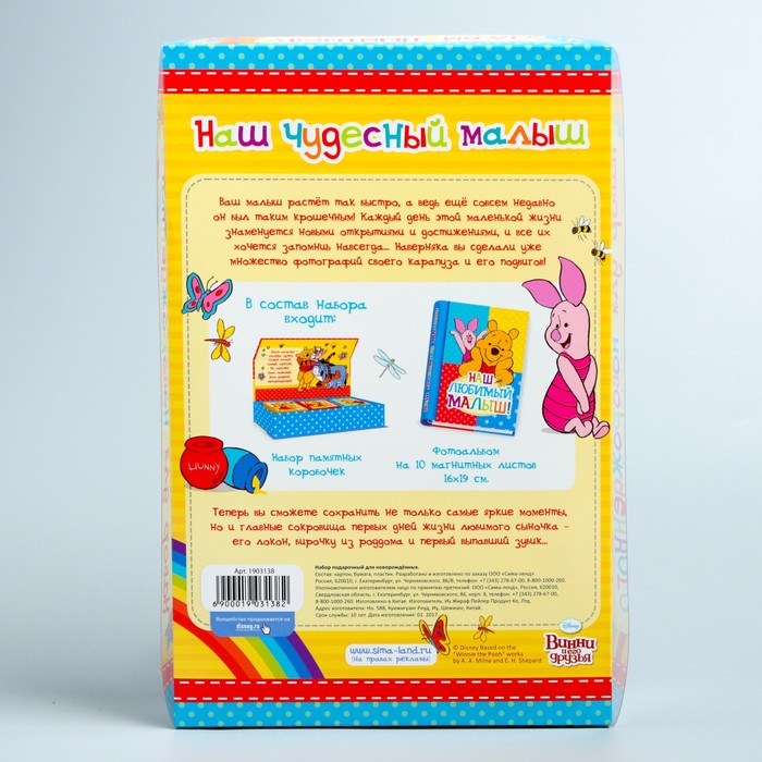 Подарочный набор: фотоальбом на 10 магнитн. листов и памятные коробочки в пенале "Наш чудесный малыш", Медвежонок Винни и его друзья