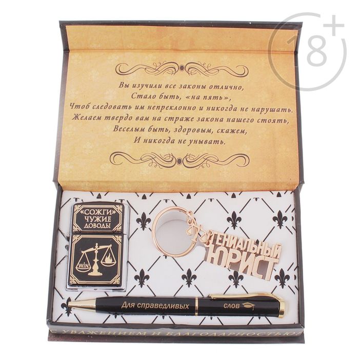 Отличным подарком для человека, который работает с законом и правами, станет набор "Гениальному юристу".