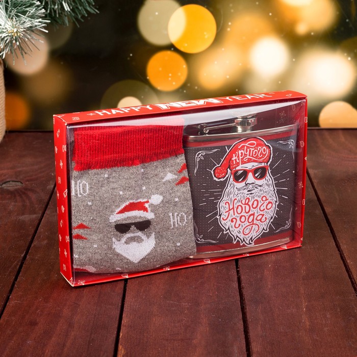 Подарочный набор "Крутого Нового года"фляжка 180 мл, носки р-р 41-44
