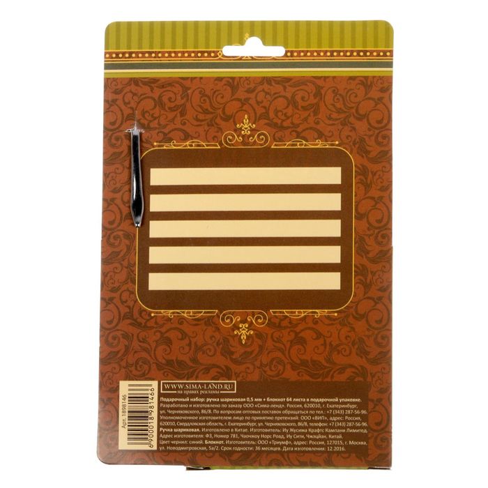 | Составляющие набора | Блокнот |