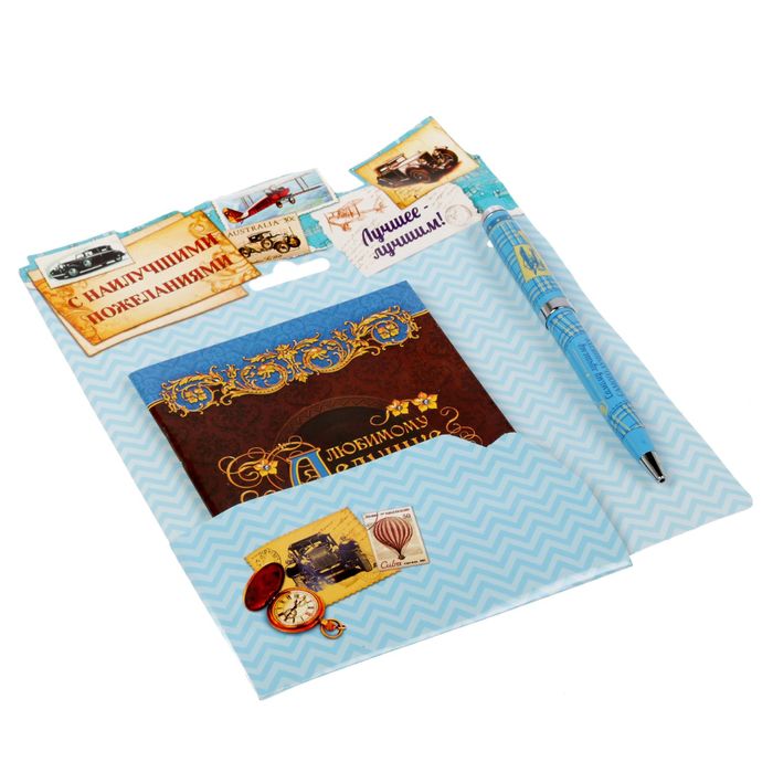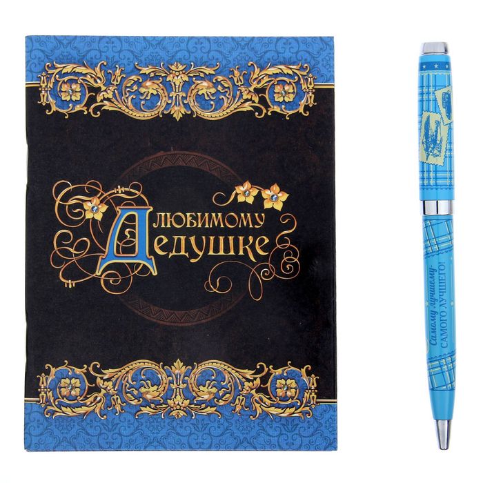 Подарочный набор "Любимому дедушке": блокнот-открытка, А6,32 листа и ручка