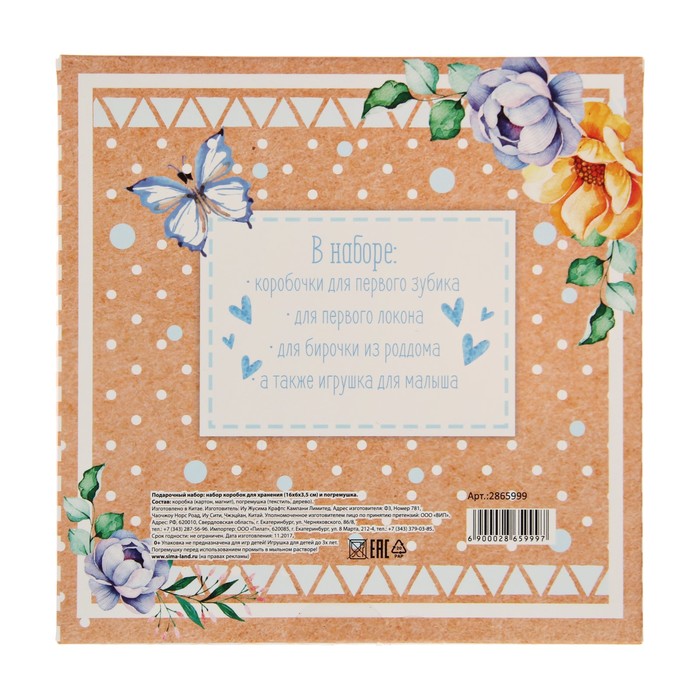 Подарочный набор "Любимый малыш": набор памятных коробочек и погремушка